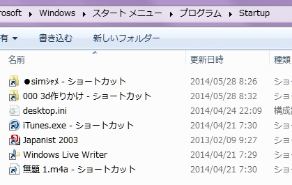 とりあえず、スタートアップにこのやりかけフォルダを入れて、