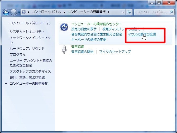 コントロールパネル→コンピュータの簡単操作→マウスの動作の変更