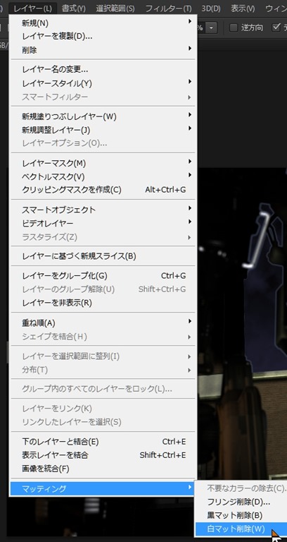 レイヤー→マッティング→白マット削除