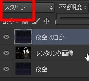 夜空レイヤーをコピーして、レンダリング画像の上に出します。