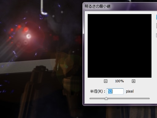 明るすぎるので、逆光を『明るさの最小値』で薄くします。