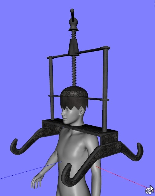 ↑『エクセター公の娘(伸張拷問台)』を私の話で使うために 鎖をいじってモーフを作っている私(笑)