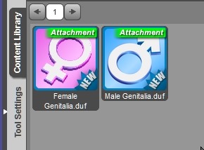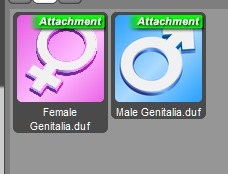 Daz Studio4.6では、↓このように、アイコンの枠が青いのとグレーなのとあります。