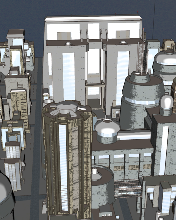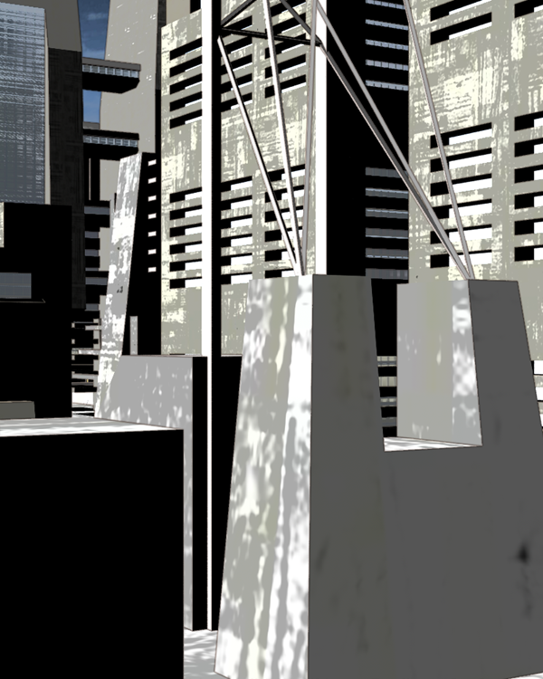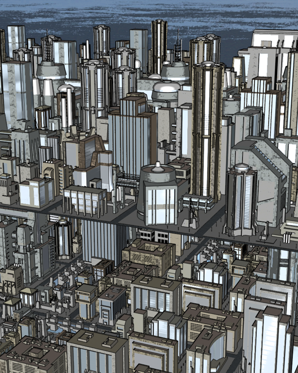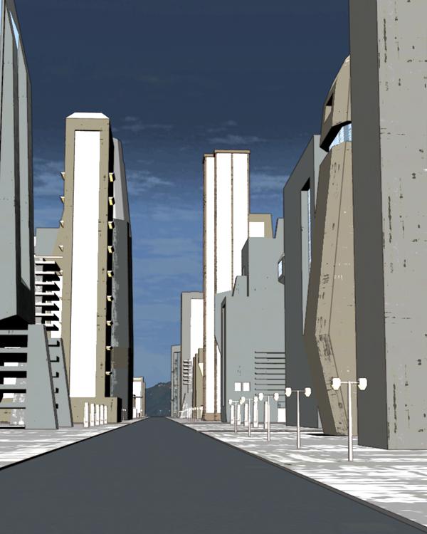 ディストピアをばらしたのをOBJで持ってきて、インスタンスで配置した方がいい気がする。