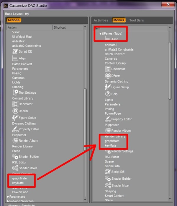あとは、グラフエディタとキーメイトの追加方法がわからないので、これはDazStudioに聞く。