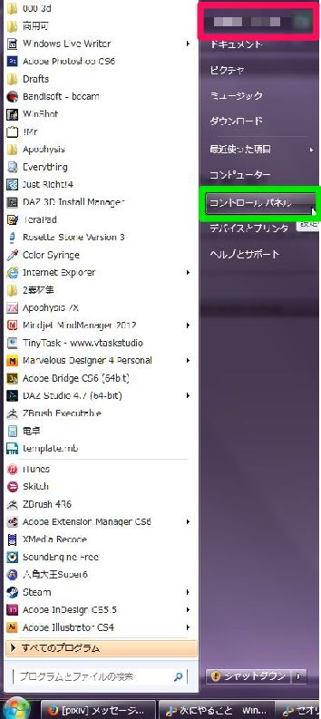 変更する場は、緑枠の『コントロールパネル』をクリック。