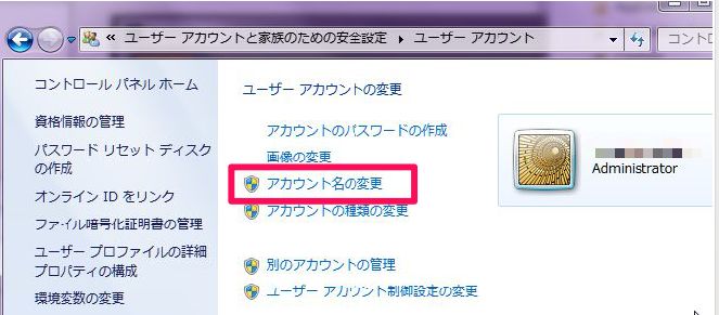 『アカウント名の変更』をクリック。