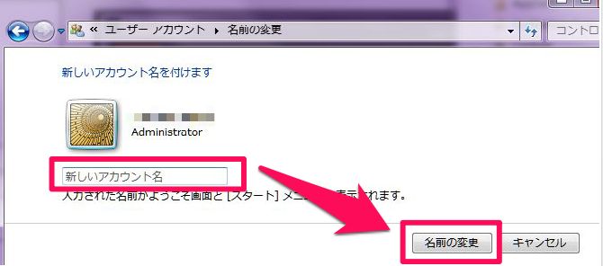 ■Windowsのユーザー名を変更する場合。
