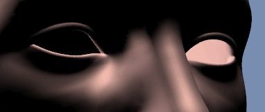 ついでに、無駄にメッシュのこまかい目周りと見えていない口の中のオパシティをゼロにする。