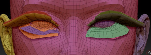 それにともなって、額からこめかみのポリゴンも整列させた。