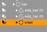 一端、襟足に並べて、この四枚を襟足グループに入れる。