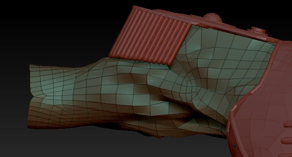 もう一度、靴底があるメッシュを書き出して、ZBrushで置き換える。