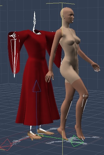 いちおう、初めてのダイナミッククロスなので最後までシミュレーションしてみるけど、服がおいつかないんだろうな。