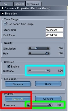 緑枠は『ドレープの量』です。一気にするときは右端まで振り切ってください。