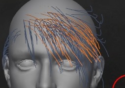 髪の毛に直線はないので、どの角度から見ても曲線にしておく。