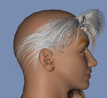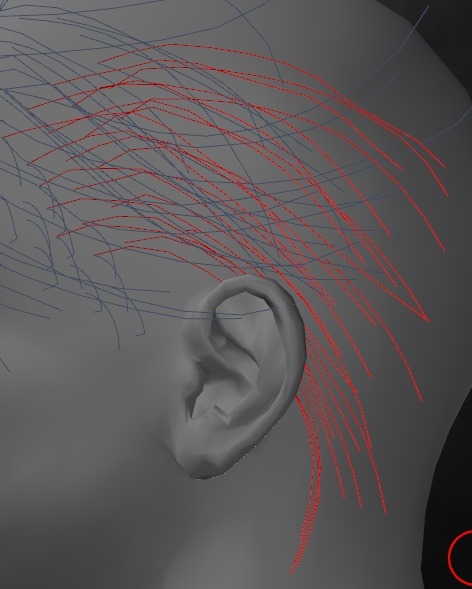 正面髪ほど手が込んでいないので、サイドの髪は、上面図でカーブを決めて