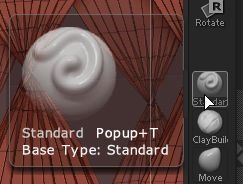 私はメッシュをMayaでつくってしまうので、 ZBrushでは『整える』ことしかしないため、使ってるのは少ない。 スタンダードブラシ。(盛り上げる)